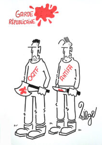 L’autocensure, ce mal qui ronge le corps professionnel des dessinateurs de presse. Même la presse de gauche et d’extrême gauche n’y échappe pas car les nouveaux inquisiteurs se veulent toujours plus exigeant, toujours plus pointilleux. C’est le syndrome Robespierre. Mais dans ce paysage un peu désolé, Miège passe, serein. Qu’est-ce qui lui donne cette zénitude apparente ? Bénéficie-t-il d’une protection particulière contre les foudres de la justice injuste, contre le harcèlement des inquisiteurs woke et les folies meutrières des islamistes ?