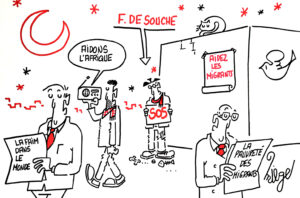 L’autocensure, ce mal qui ronge le corps professionnel des dessinateurs de presse. Même la presse de gauche et d’extrême gauche n’y échappe pas car les nouveaux inquisiteurs se veulent toujours plus exigeant, toujours plus pointilleux. C’est le syndrome Robespierre. Mais dans ce paysage un peu désolé, Miège passe, serein. Qu’est-ce qui lui donne cette zénitude apparente ? Bénéficie-t-il d’une protection particulière contre les foudres de la justice injuste, contre le harcèlement des inquisiteurs woke et les folies meutrières des islamistes ?